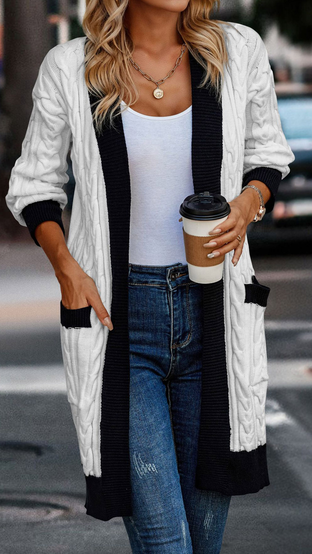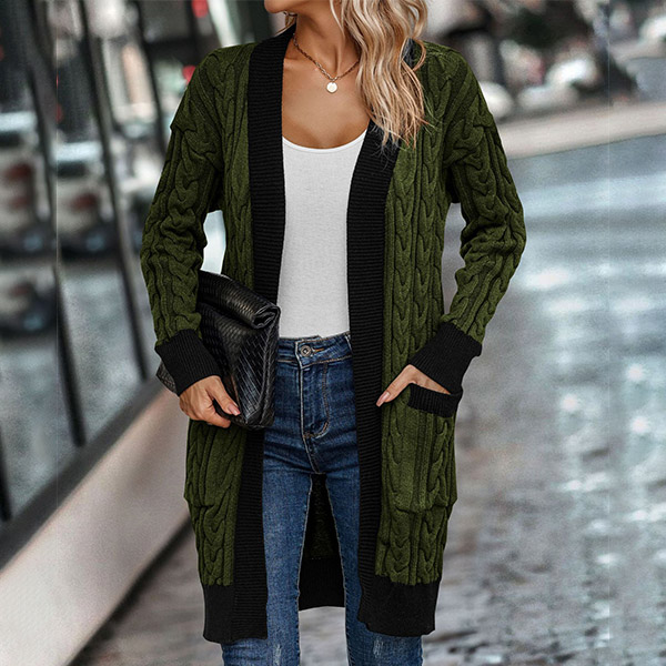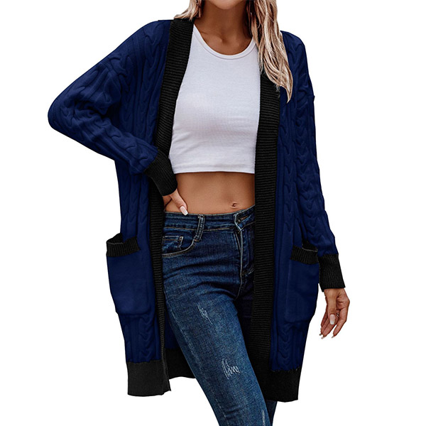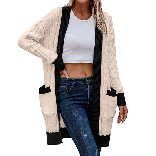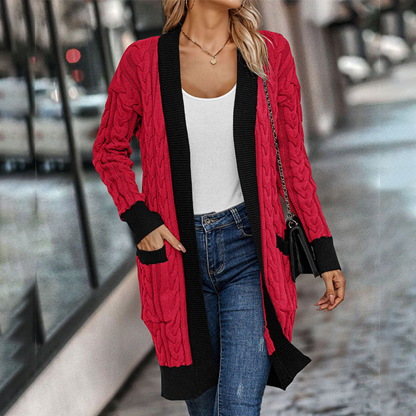 With its fashionable contrast color and cozy design, this knitted cardigan is the perfect choice for staying stylish and comfortable throughout the seasons.