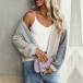 Fashion Contrast Color Long Sleeve Knitted Cardigan