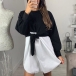 Your style can have an instant boost when you wear this dress. Contrast color and mock two-piece style design make this piece look so distinctive,while the lace-up design at the waist part can help showcase your figure. No matter for your daytime out or night dating,this chic dress can be a wise choice.