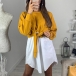 Fashion Contrast Color Long Sleeve Lace-up Mock Two-piece Dress