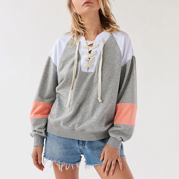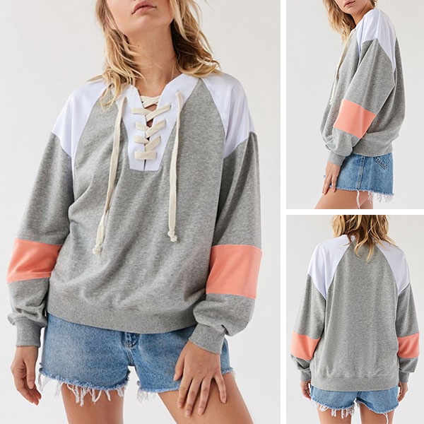 to have a place in your wardrobe. Contrast color style,the lace-up v-neck design is one of the highlights.