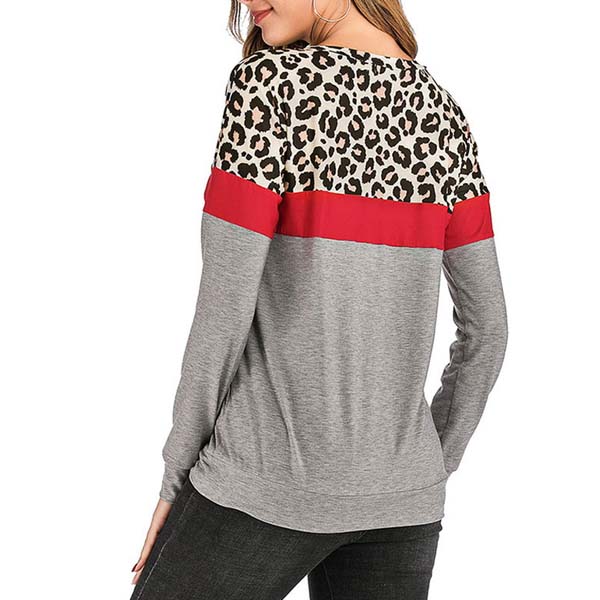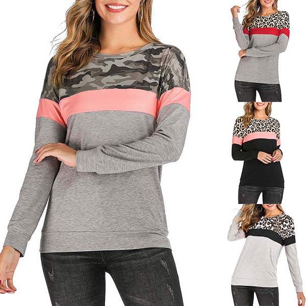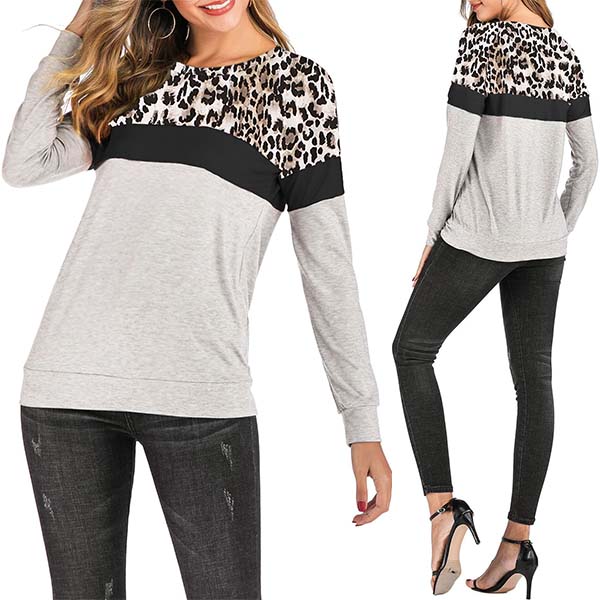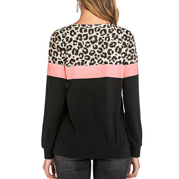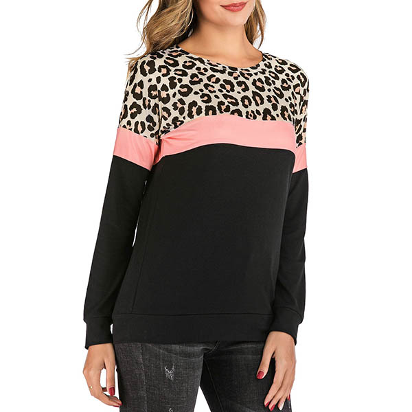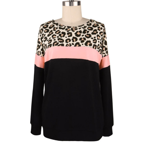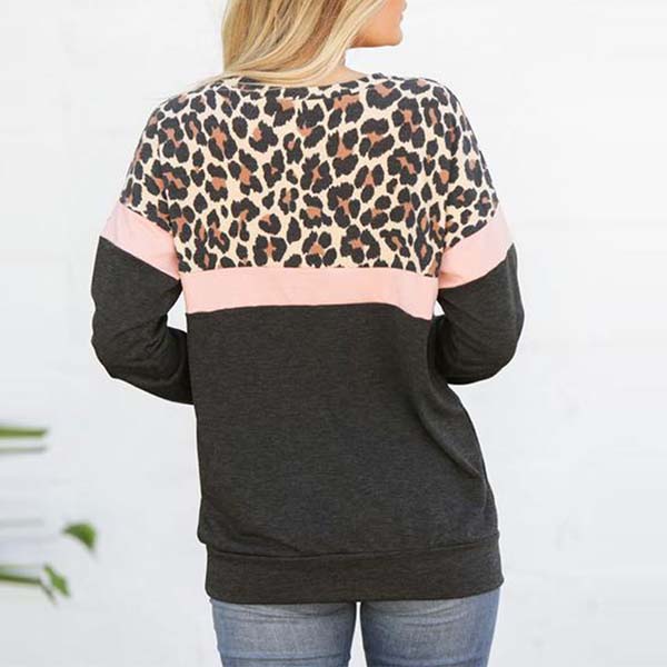 Fashion Contrast Color Long Sleeve Leopard Printed Spliced Sweatshirt