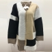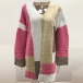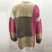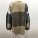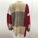 Fashion Contrast Color Long Sleeve Loose Knit Cardigan
