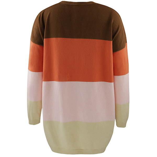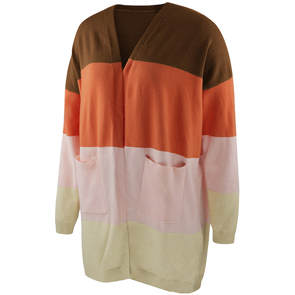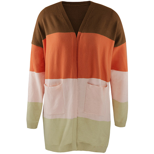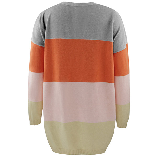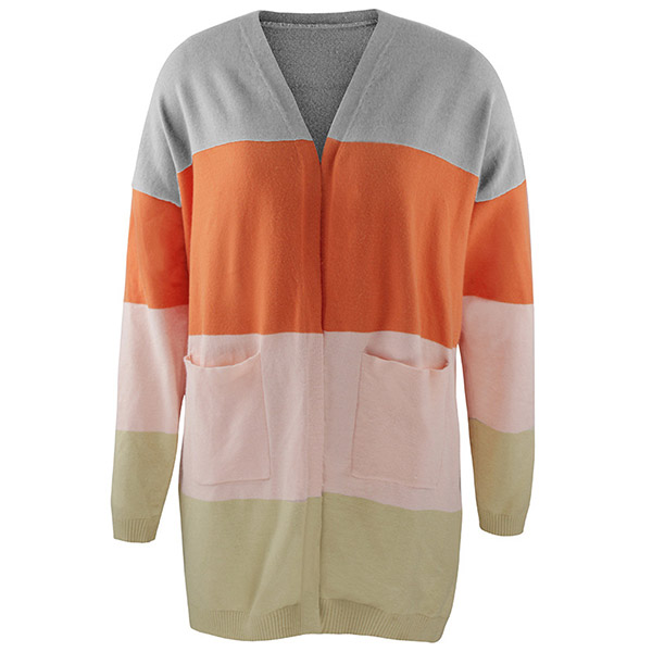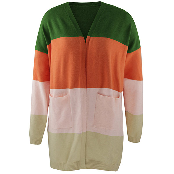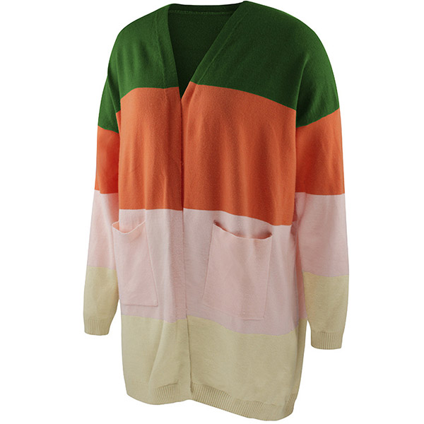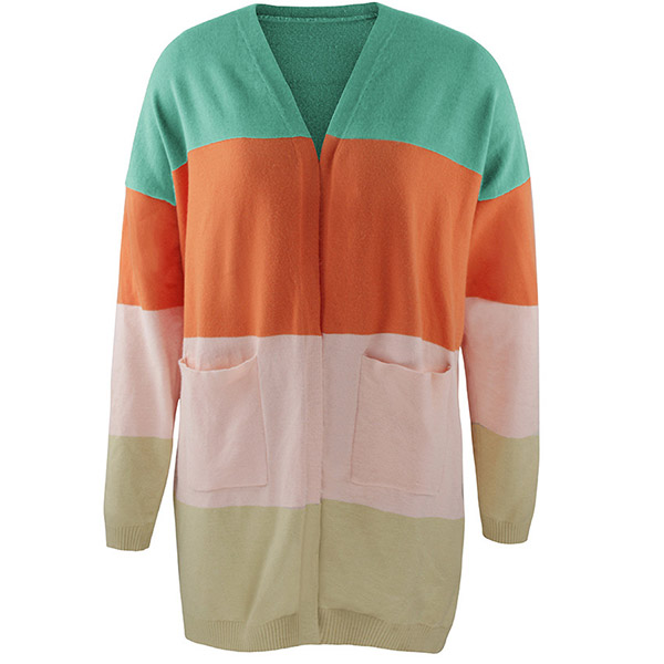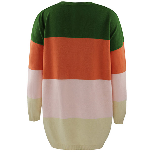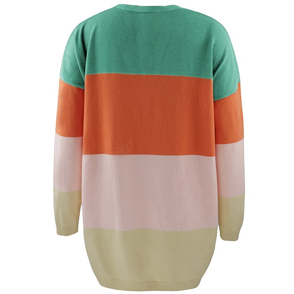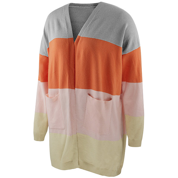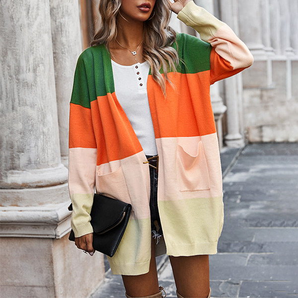 Fashion Contrast Color Long Sleeve Loose Knit Cardigan