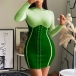 Fashion Contrast Color Long Sleeve Mock Neck Lace-up Tight Dress