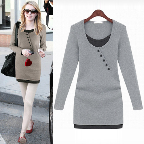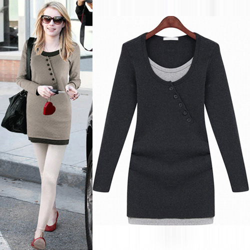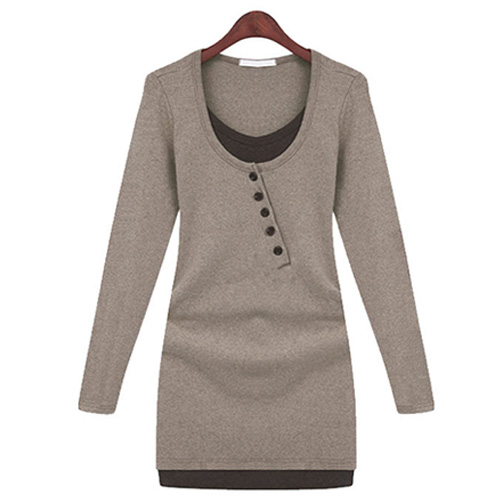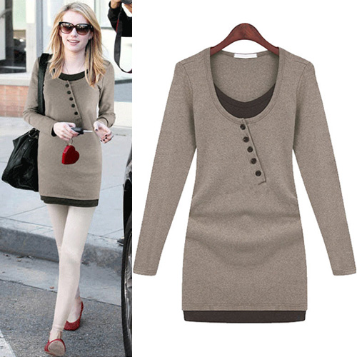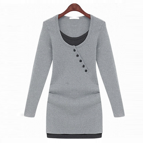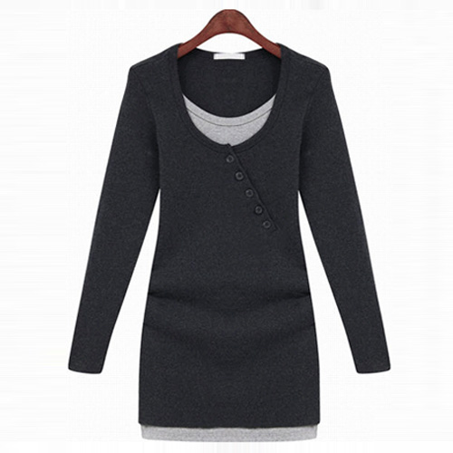 Mock two-piece style,so chic and stylish. Long sleeve,round neck and slim fit design.