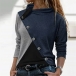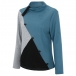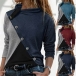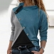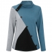 Fashion Contrast Color Long Sleeve Oblique-button Cowl Neck Top