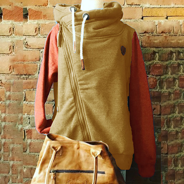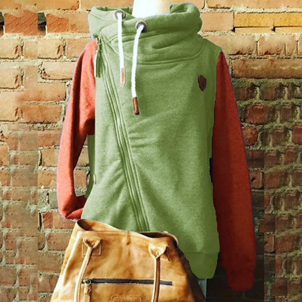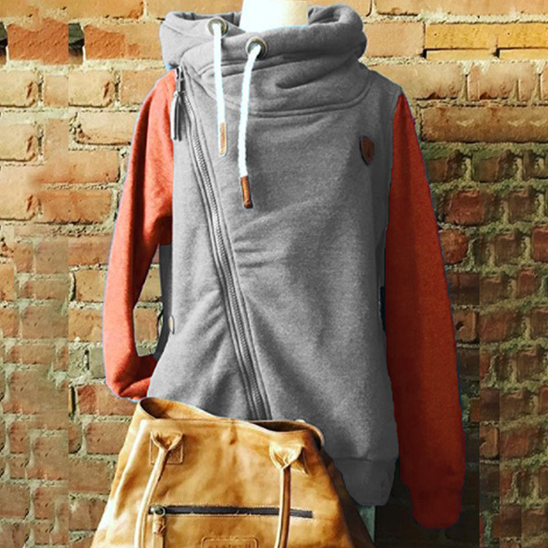 Only need one glance,you would be attracted by this chic and unique sweatshirt. Contrast color design is one of the design highlights,which makes this piece look so attractive. What's more,the oblique zipper design will further enhance its charm. When the autumn season hits,this piece would be your wise choice.