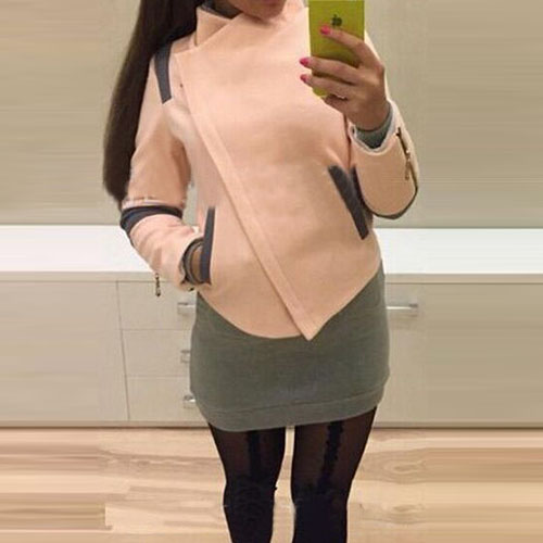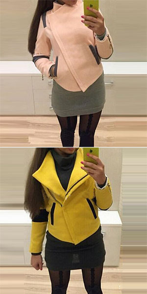 outfitted with long sleeve and oblique zipper design,chic and stylish. In these