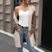 Fashion Contrast Color Long Sleeve Patch Pockets Knitted Cardigan
