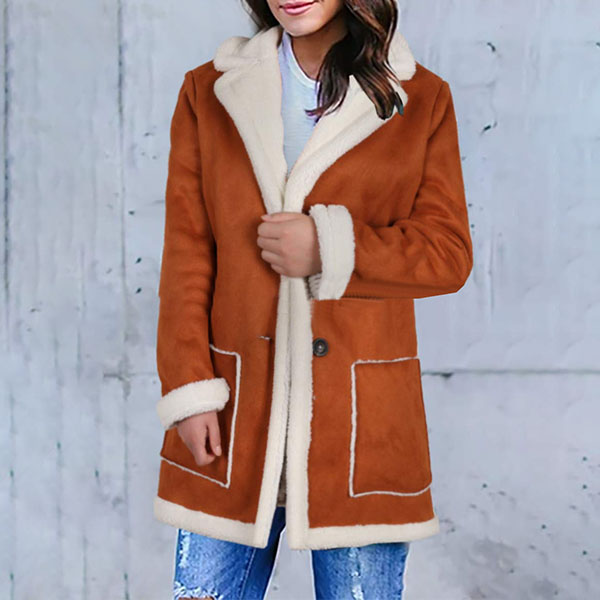 For the days you feel cold,you can just slip into this coat to stay warm! Contrast color design breaks the simple and dull design style,while the plush notched lapel and lining design will ensure you a warm and comfortable day. Just embrace the cold days with this delightful coat!