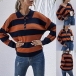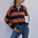 Fashion Contrast Color Long Sleeve POLO Collar Knit Top