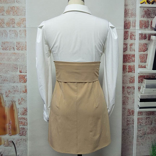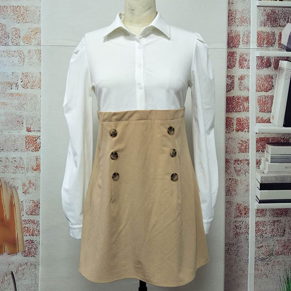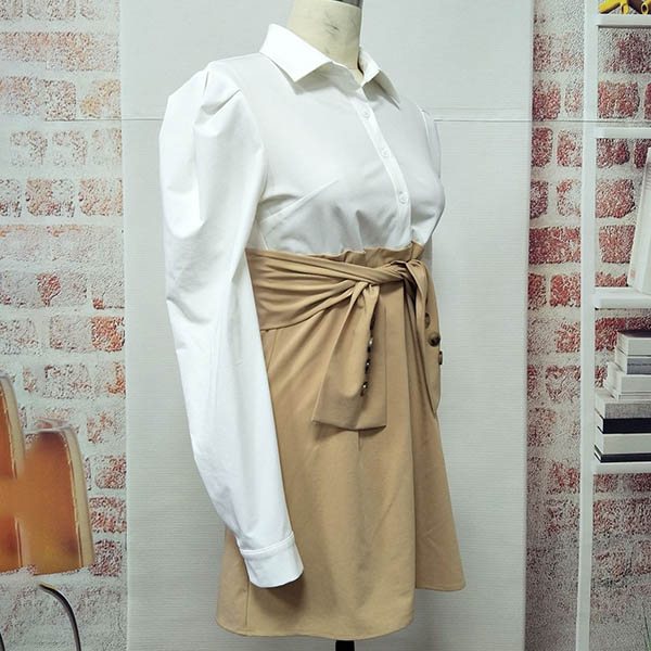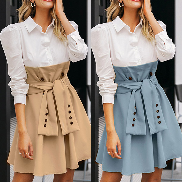 When you don't know what to wear for your busy workdays,you can make your eyes focused on this shirt dress. Contrast color design makes this piece look so stylish and distinctive,while the lace-up design at the waist design will further enhance its charm. Dress it up with your favourite heels,you can look charming and beautiful enough!