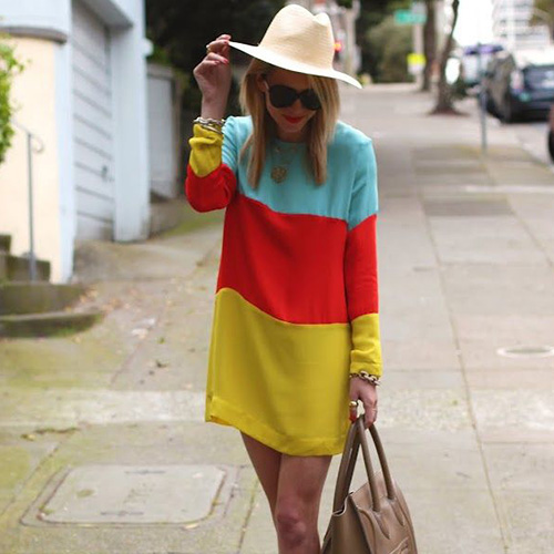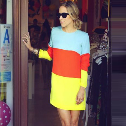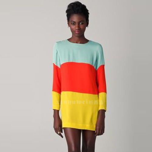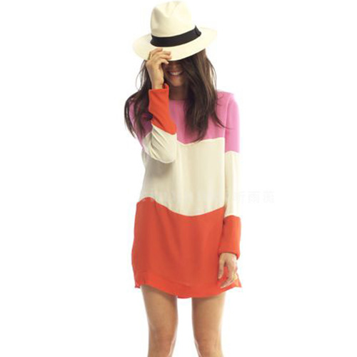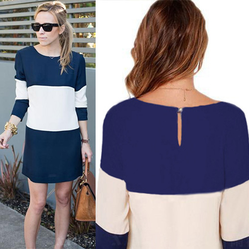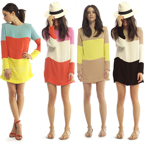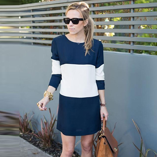 Relaxed and refined: this long sleeve dress has your own style. Contrast color style,
