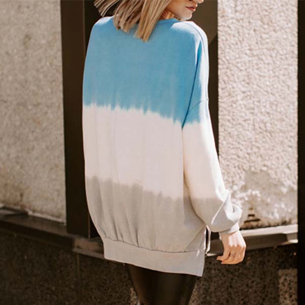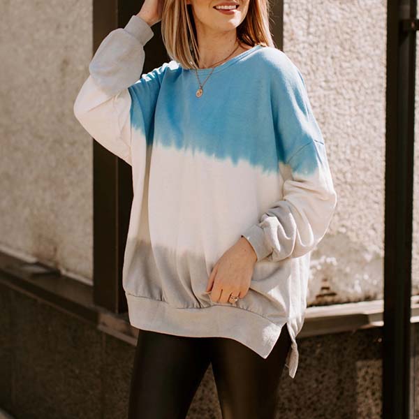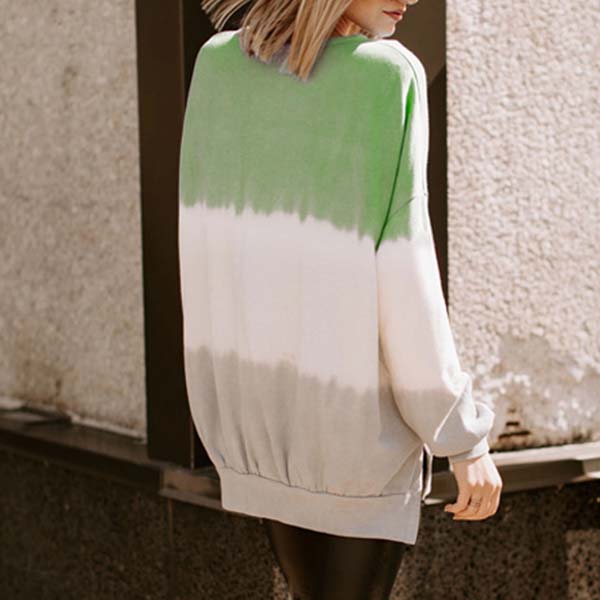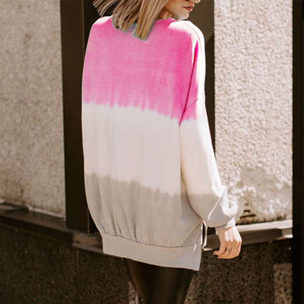 Fashion Contrast Color Long Sleeve Round Neck High-low Hem Sweatshirt