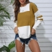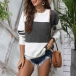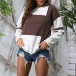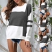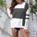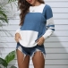 Fashion Contrast Color Long Sleeve Round neck Knit Top