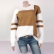 When the days get a little cold,this knit top can be your wise choice. Contrast color design makes it look not so simple and dull. Finished with long sleeve and round neck design,this knit top allows to be matched with different style bottoms like shorts,skirts,jeans and so on.