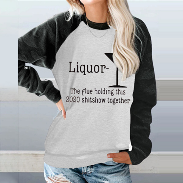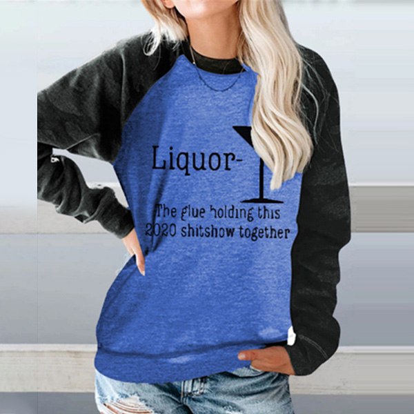 Fashion Contrast Color Long Sleeve Round Neck Letters Printed T-shirt