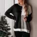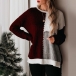 Fashion Contrast Color Long Sleeve Round Neck Loose Knit Top