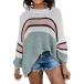 Fashion Contrast Color Long Sleeve Round Neck Loose Knit Top