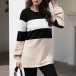 Fashion Contrast Color Long Sleeve Round Neck Loose Knit Top