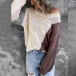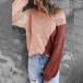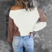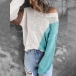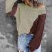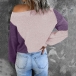 Fashion Contrast Color Long Sleeve Round Neck Loose Sweater