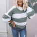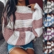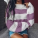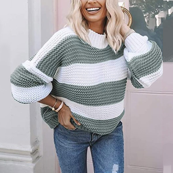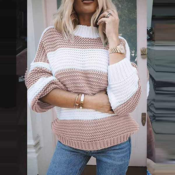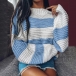 Fashion Contrast Color Long Sleeve Round Neck Loose Sweater