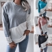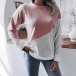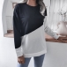 Fashion Contrast Color Long Sleeve Round Neck Loose T-shirt