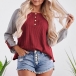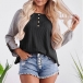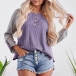 Fashion Contrast Color Long Sleeve Round Neck Loose T-shirt