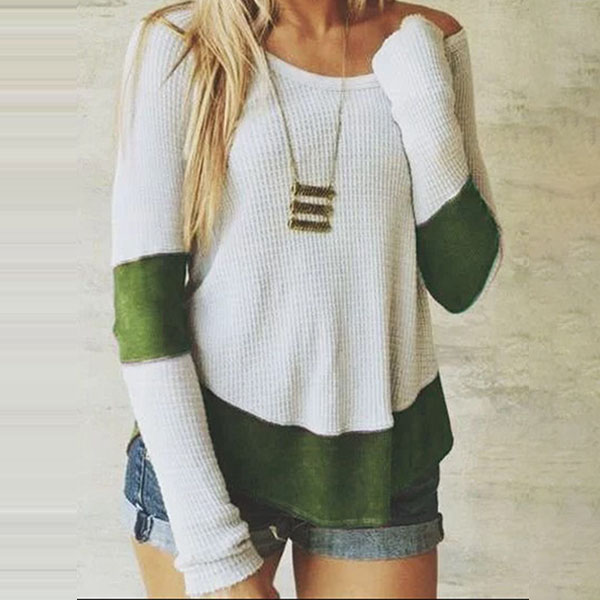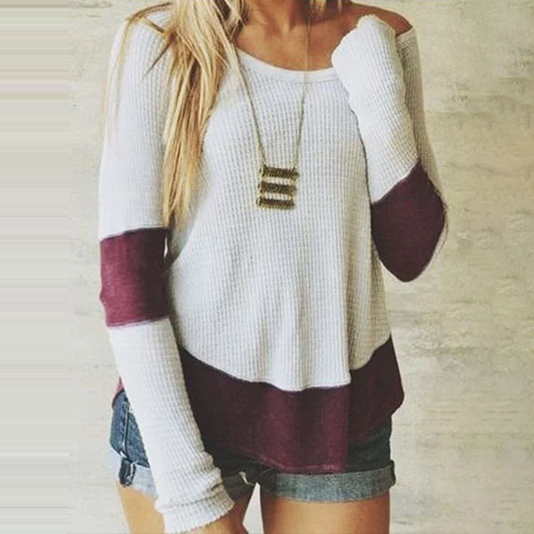 As for a simple,casual,cozy yet stylish weekend look,you can have a try this t-shirt. Contrast color style,finished with long sleeve,round neck and a loose silhouette,this t-shirt can offer you a comfortable day with its soft and breathable fabric.