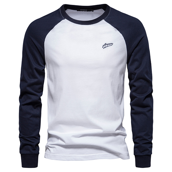 Fashion Contrast Color Long Sleeve Round Neck Shirt for Men