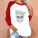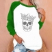 Fashion Contrast Color Long Sleeve Round Neck Skull Head Pattern T-shirt