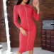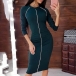 Fashion Contrast Color Long Sleeve Round Neck Slim Fit Dress
