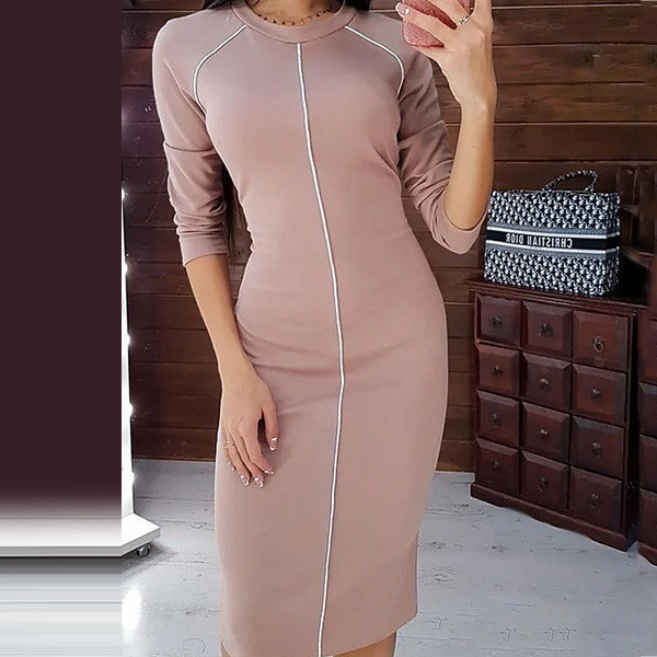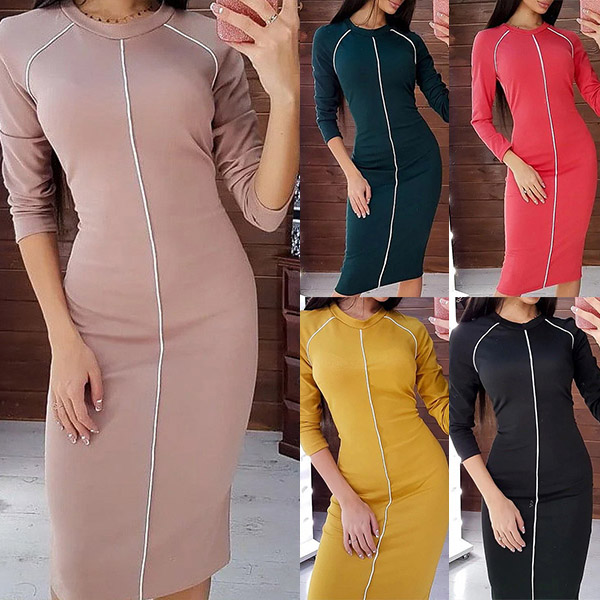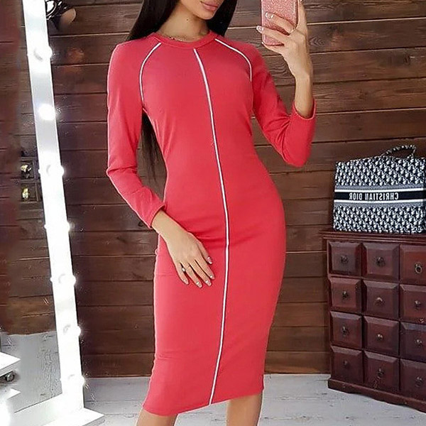 Thanks to the fit silhouette design,your slender figure can have a full display in this dress. Contrast color design makes it look not so simple and dull. Crafted from soft and breathable fabric,with long sleeve and round neck design,this dress can give you a comfortable day while it exudes your style and charm.