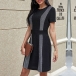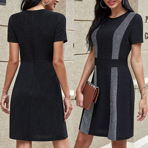 Start your wonderful day with a delightful dress such as this piece. Contrast color design makes it look not so simple and dull. Finished with short sleeve,round neck and a fit silhouette,this dress can showcase your slender figure while it maintains your style and personality.