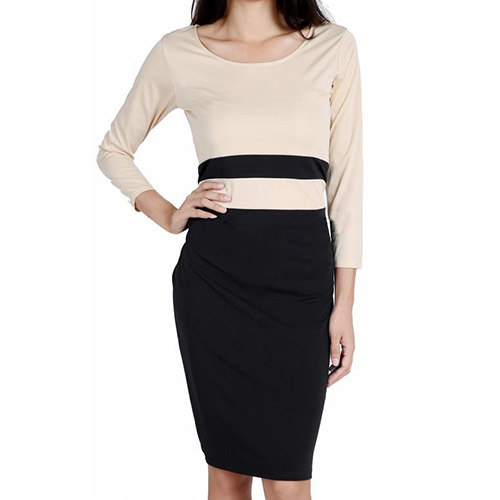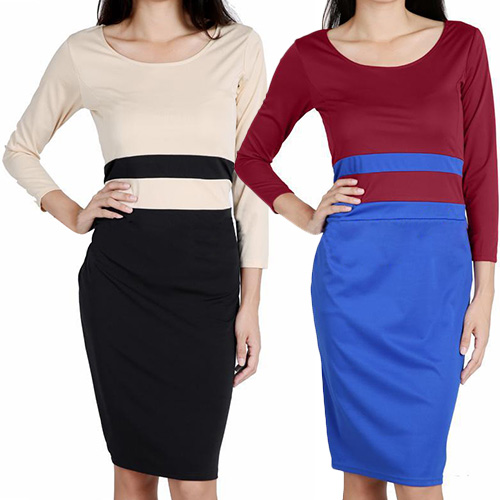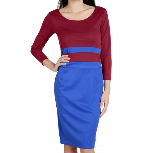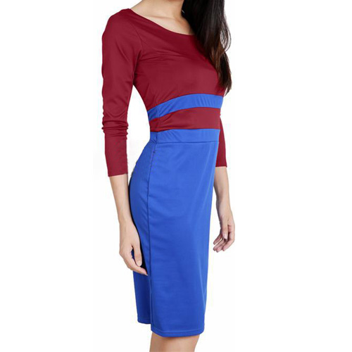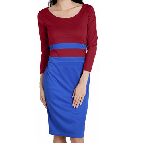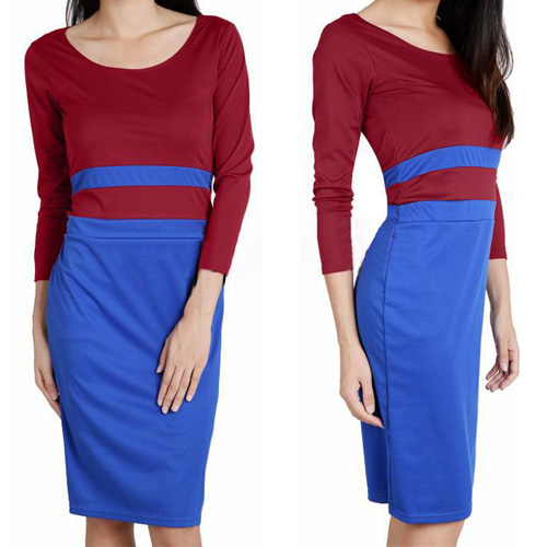This dress features contrast color style,with long sleeve,round neck and slim fit design,