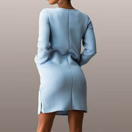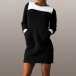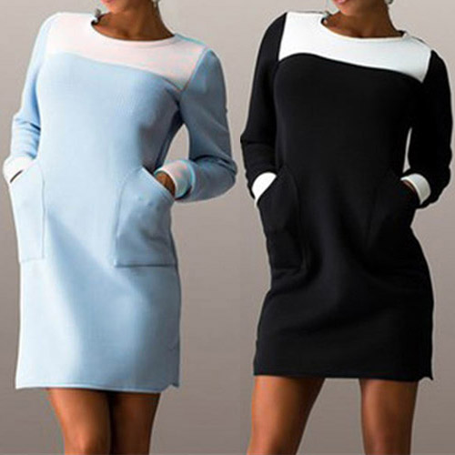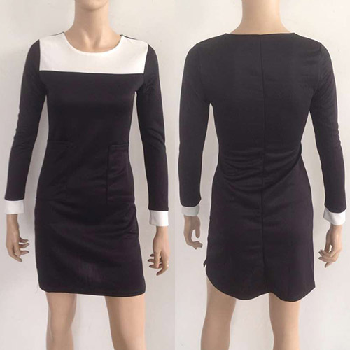 That's why we're loving this dress. Contrast color with long sleeve and round neck design