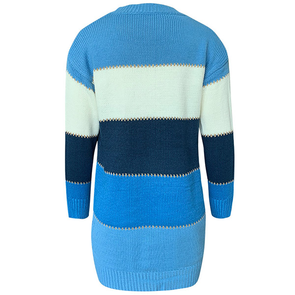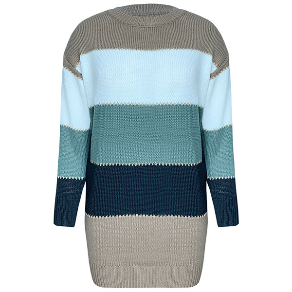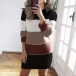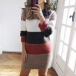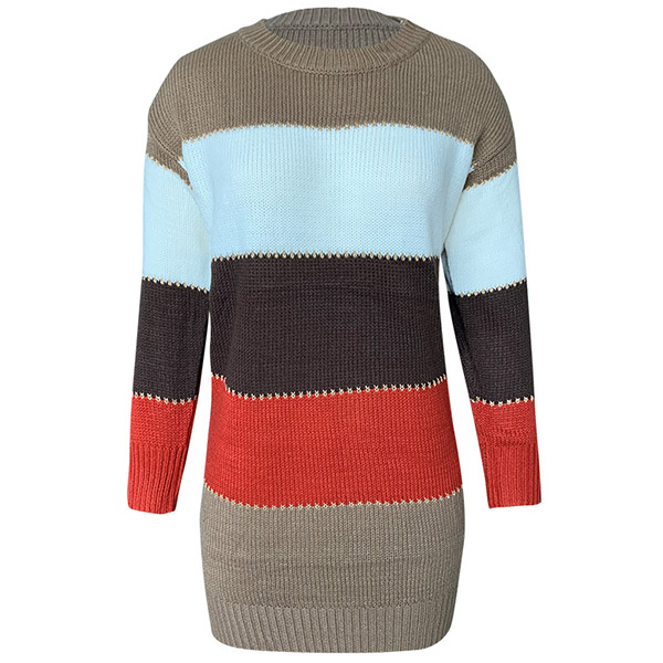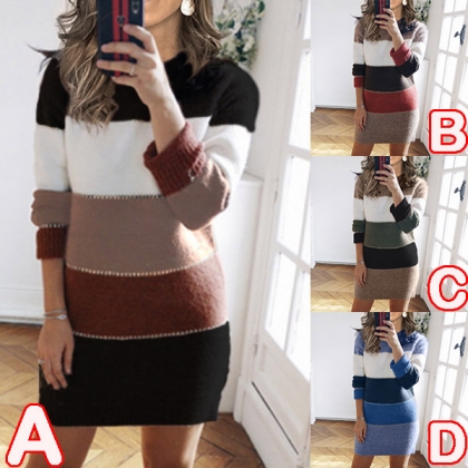 Fashion Contrast Color Long Sleeve Round Neck Slim Fit Sweater Dress