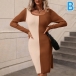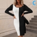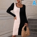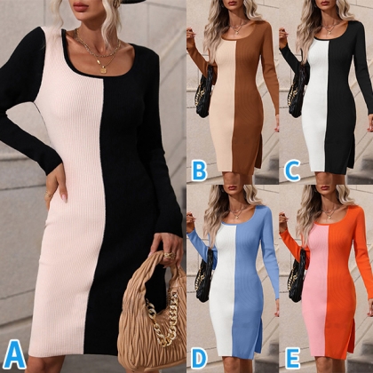 This is a must-have bodycon dress for fashion-savvy ladies. It features a round neck, long sleeves, and a slit at the side. The contrast colors make this dress stand out and the bodycon silhouette flatters your figure.