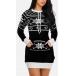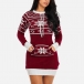 Fashion Contrast Color Long Sleeve Round Neck Snowflake Pattern Sweater Dress
