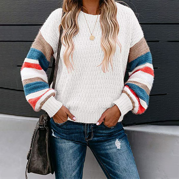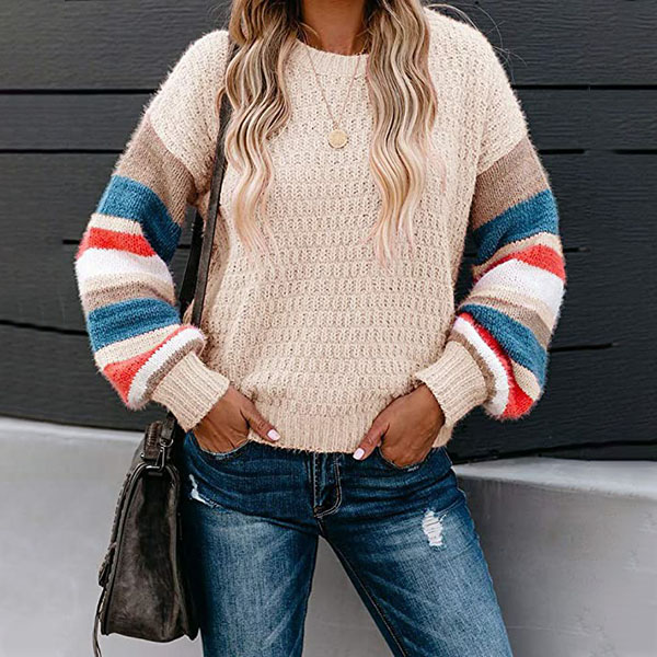 Make your winter wardrobe more complete by adding this sweater. Contrast color design makes it look more stylish and attractive. Finished with long sleeve and round neck design,this sweater not only can keep you warm and comfy,but also can offer you different matching styles.