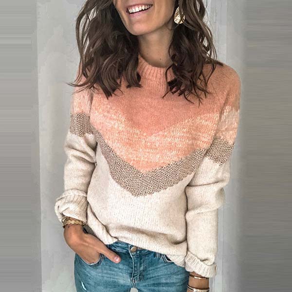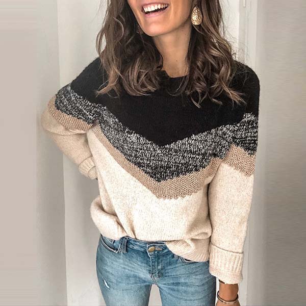 Fashion Contrast Color Long Sleeve Round Neck Sweater