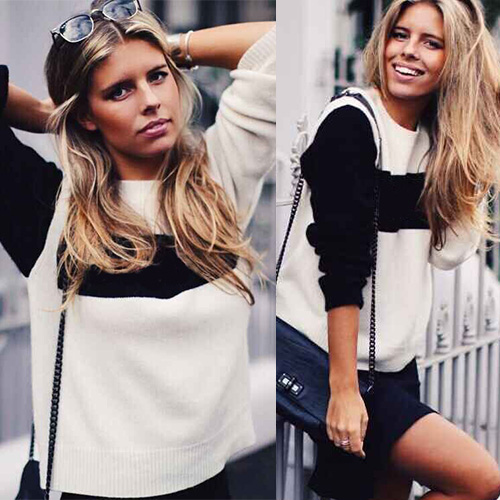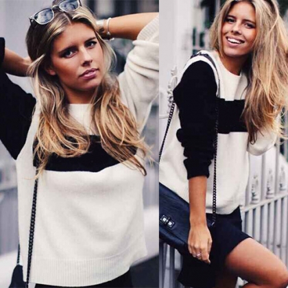 Combination of black and white elements,classic and stylish. Outfitted with long sleeve and