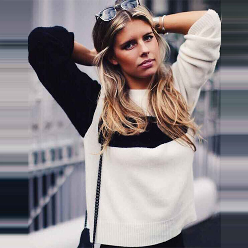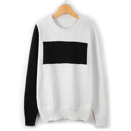 Fashion Contrast Color Long Sleeve Round Neck Sweater
