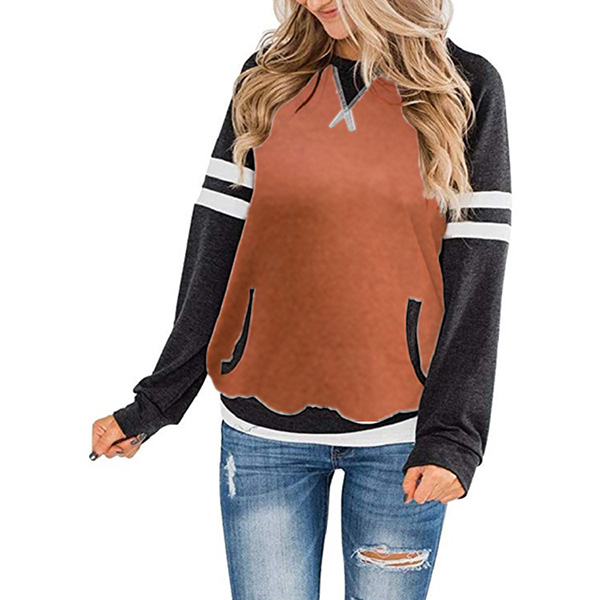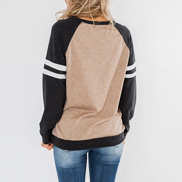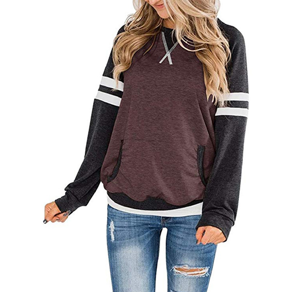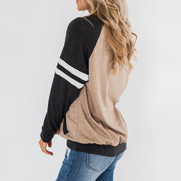 Fashion Contrast Color Long Sleeve Round Neck Sweatshirt