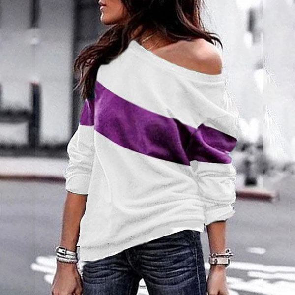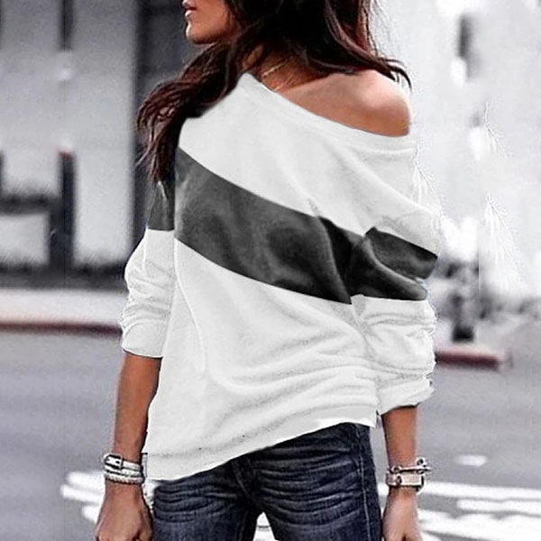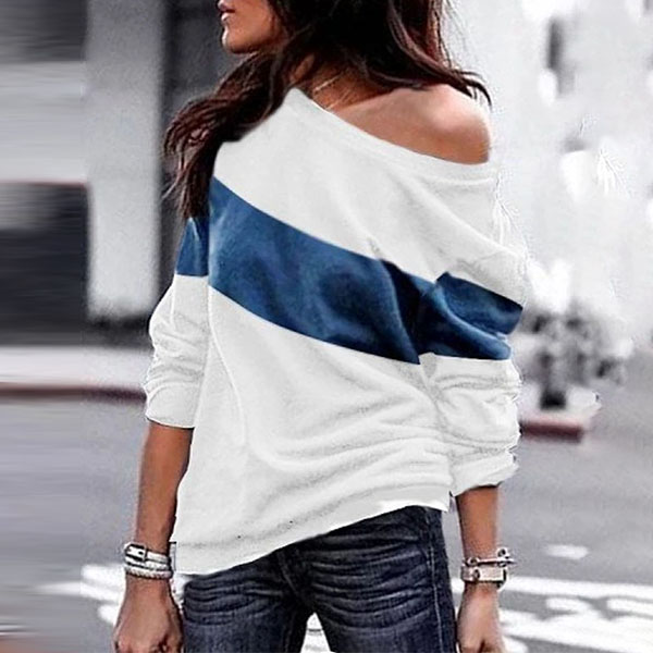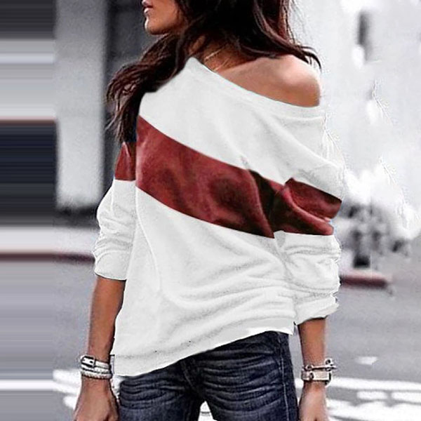 Fashion Contrast Color Long Sleeve Round Neck Sweatshirt