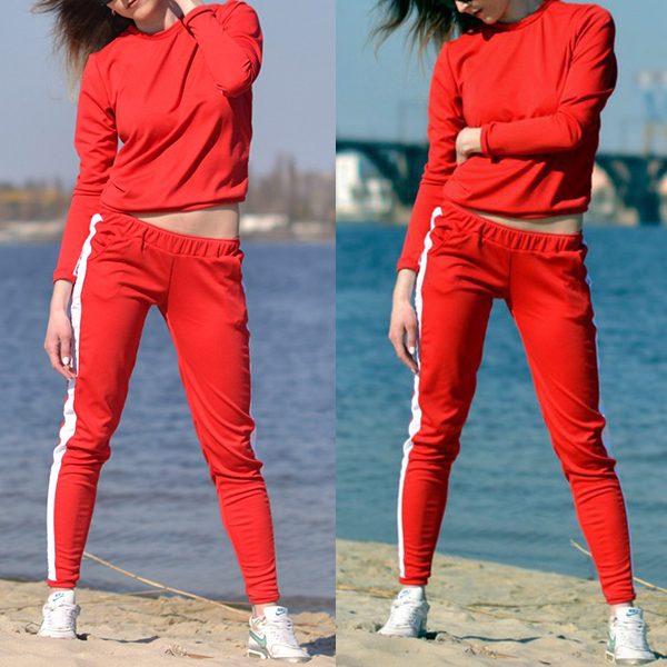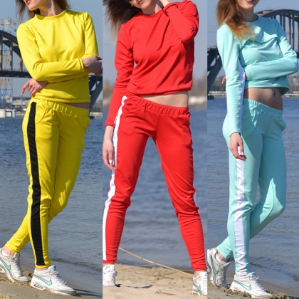 For those sports lovers,a cozy yet stylish sports suit is a must-have item. So we suggest you this two-piece set.
