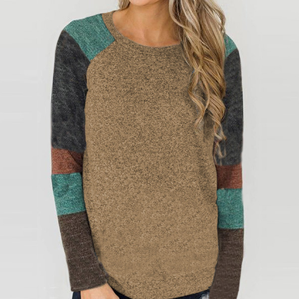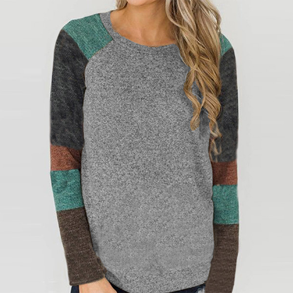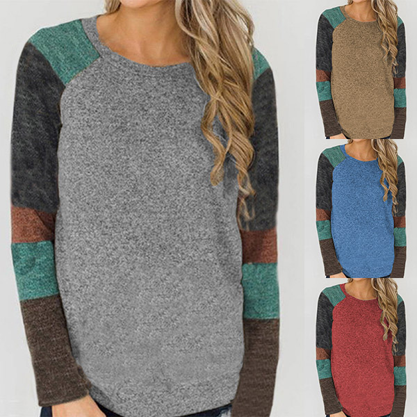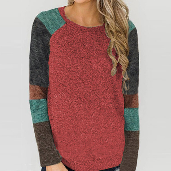 Fashion Contrast Color Long Sleeve Round Neck T-shirt