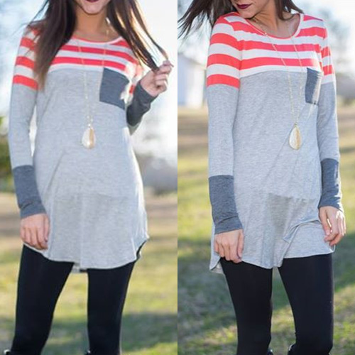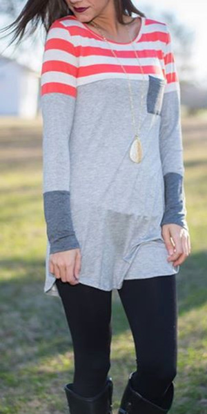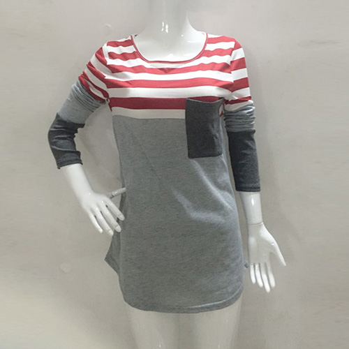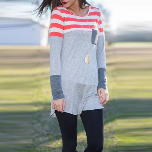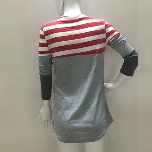This t-shirt features contrast color style,with striped spliced design,chic and unique.
