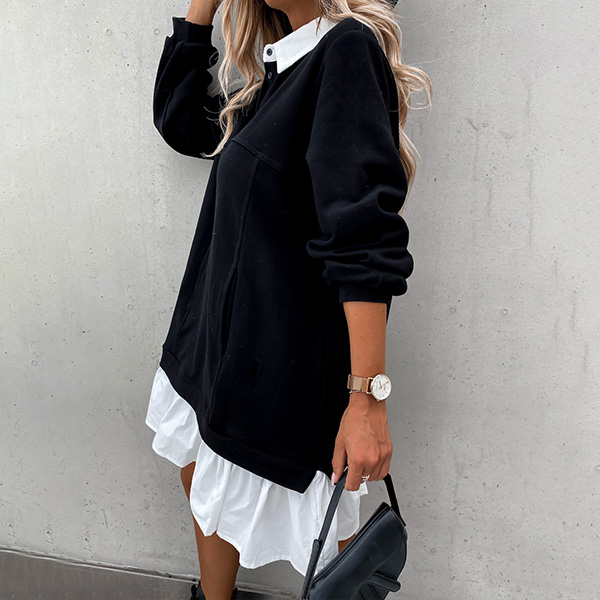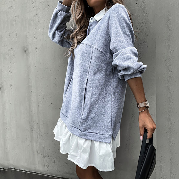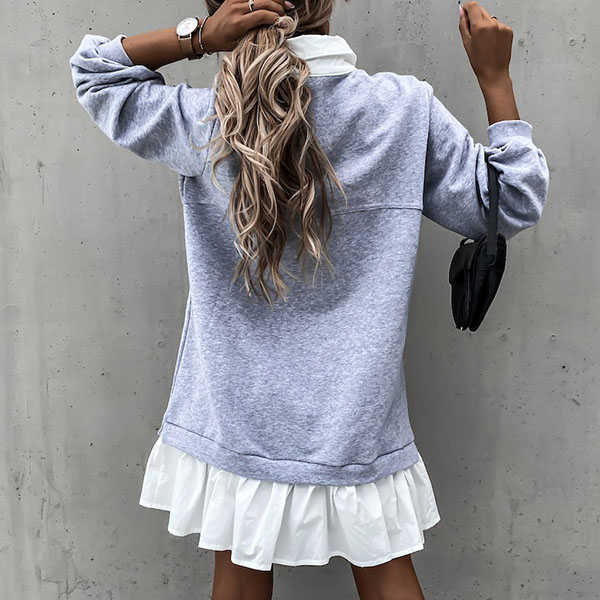 Fashion Contrast Color Long Sleeve Ruffle Hem Mock Two-piece Sweatshirt Dress